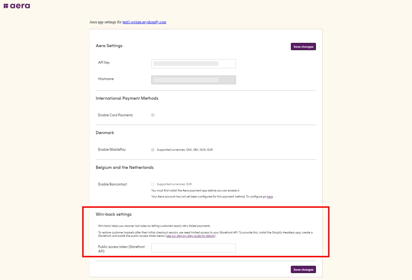 - Insert this token in the Win-back app settings, and click 'Save changes'.